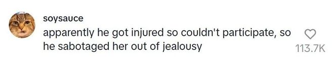 “很显然他受伤了,没法参赛,出于嫉妒便暗中搞破坏。”