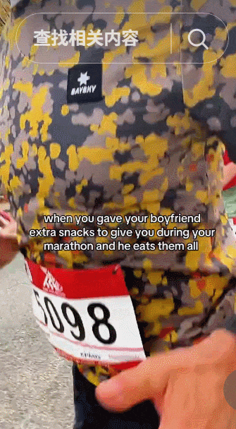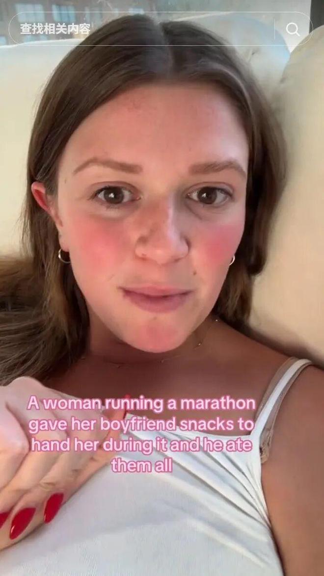 上周,她又发了一段自己参加马拉松赛跑的视频,不过主题是控诉男友Christian。配文写道:“当你把额外的零食交给男友保管,让他在比赛期间递给你,结果他全吃光了。”