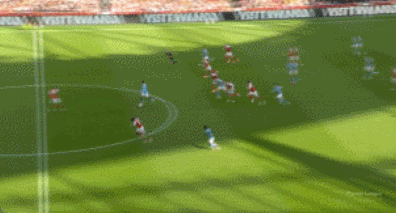 扛住曼城的几波攻势之后,阿森纳开始利用控球率的优势组织阵地战,试图打穿防线扳平比分。