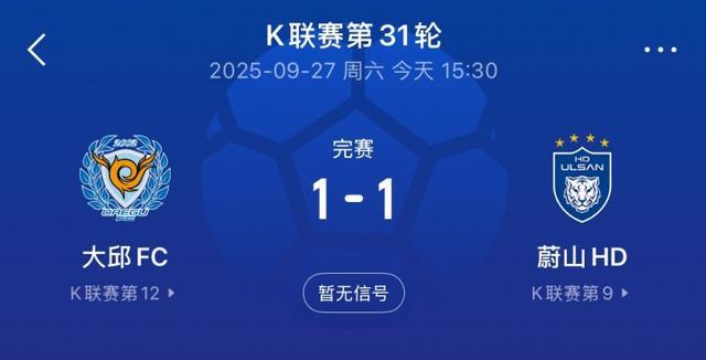 09月27日讯 K联赛第31轮今天结束的两场比赛,两支中超球队接下来的亚冠对手均收获平局。