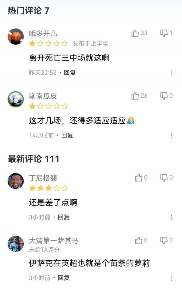 昨晚英超第6轮,利物浦1-2不敌水晶宫吃到赛季首败。本场比赛伊萨克首发出场,但表现平平,射正、过人等多项数据挂零,遭到球迷吐槽,仅得到4.4的低分。