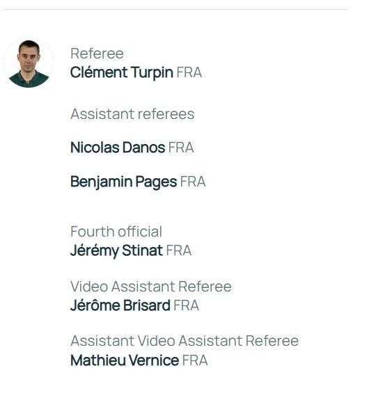 视频助理裁判:杰罗姆-布里萨、马蒂厄-韦尔尼斯