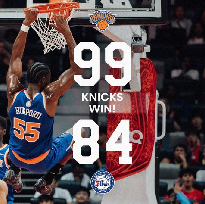 讲讲NBA季前赛,首战尼克斯99-84击败没有乔治&恩比德的费城。两队把篮筐给砸歪,一个三分球39中8,一个35中3,全部在漫长的休赛期歇大了。这种为常规赛练兵备战的比赛,内容通常会比较枯燥,主要是看某个人的发挥。