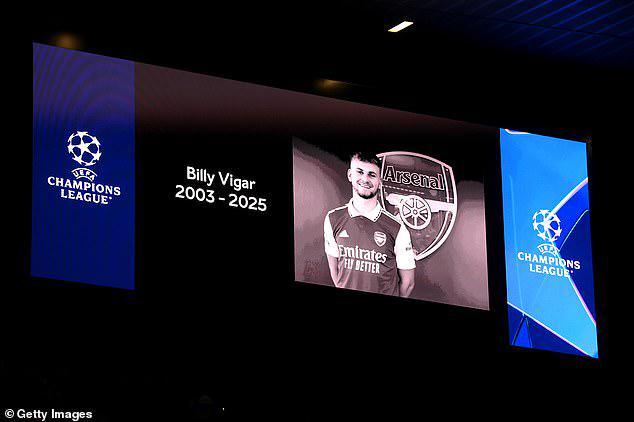 欧冠赛前,阿森纳为去世的青训球员比利维加进行了致敬仪式