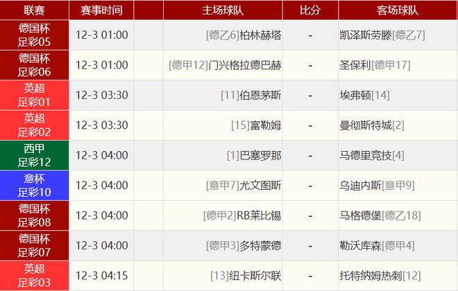 其他赛事比分: