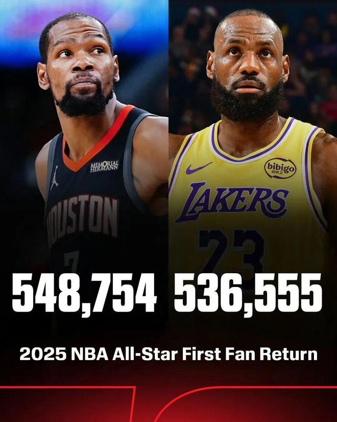 NBA全明星球迷投票下一次更新将是北京时间1月7日。