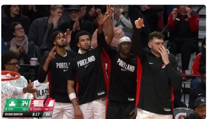 杨瀚森NBA生涯第二记三分!开拓者战绿军速射+开枪庆祝点燃主场