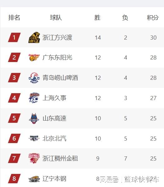 - CBA | CBA排名:广东挤掉上海重回第2,广厦16胜创纪录,辽宁3队连败