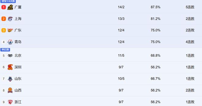 - CBA | CBA排名:广东挤掉上海重回第2,广厦16胜创纪录,辽宁3队连败